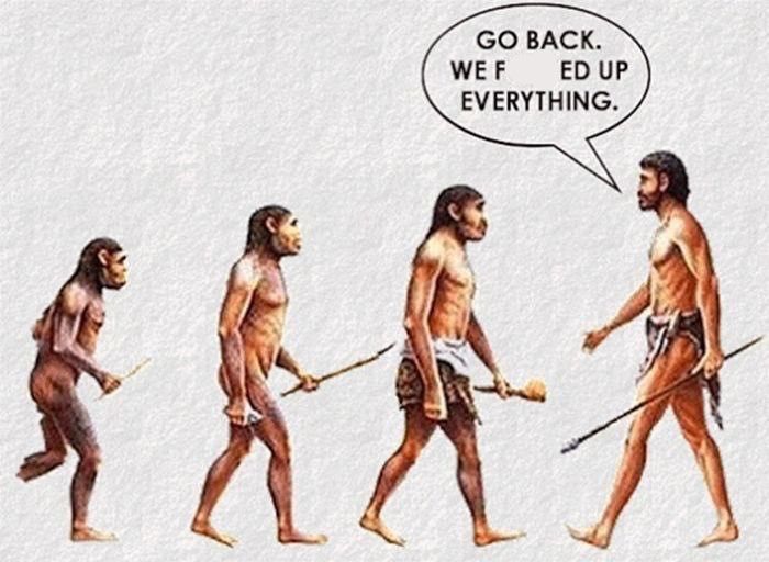 эволюция->эволюция->эволюция->эволюция->деградация в опасное для всех и себя самого существо