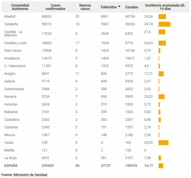Однако это конец реальной эпидемии, но вовсе не конец коронабесия правительства и чиновников. Премьер-каброн Санчес собрался продлевать Тревожное положение аж до 21 июня - еще на три недели. Ну, в принципе, логично, и так экономику порушили к чертям собачьим, так что теперь ее осталось только окончательно добить. Раньше вроде бы считалось, что продление до 7 июня - последнее, но тут он вроде как-то договорился с лидерами других партий, так что, судя по всему, продлят. Что логично, обстановка же жуткая, трупы валяются на улицах, так что нефиг.