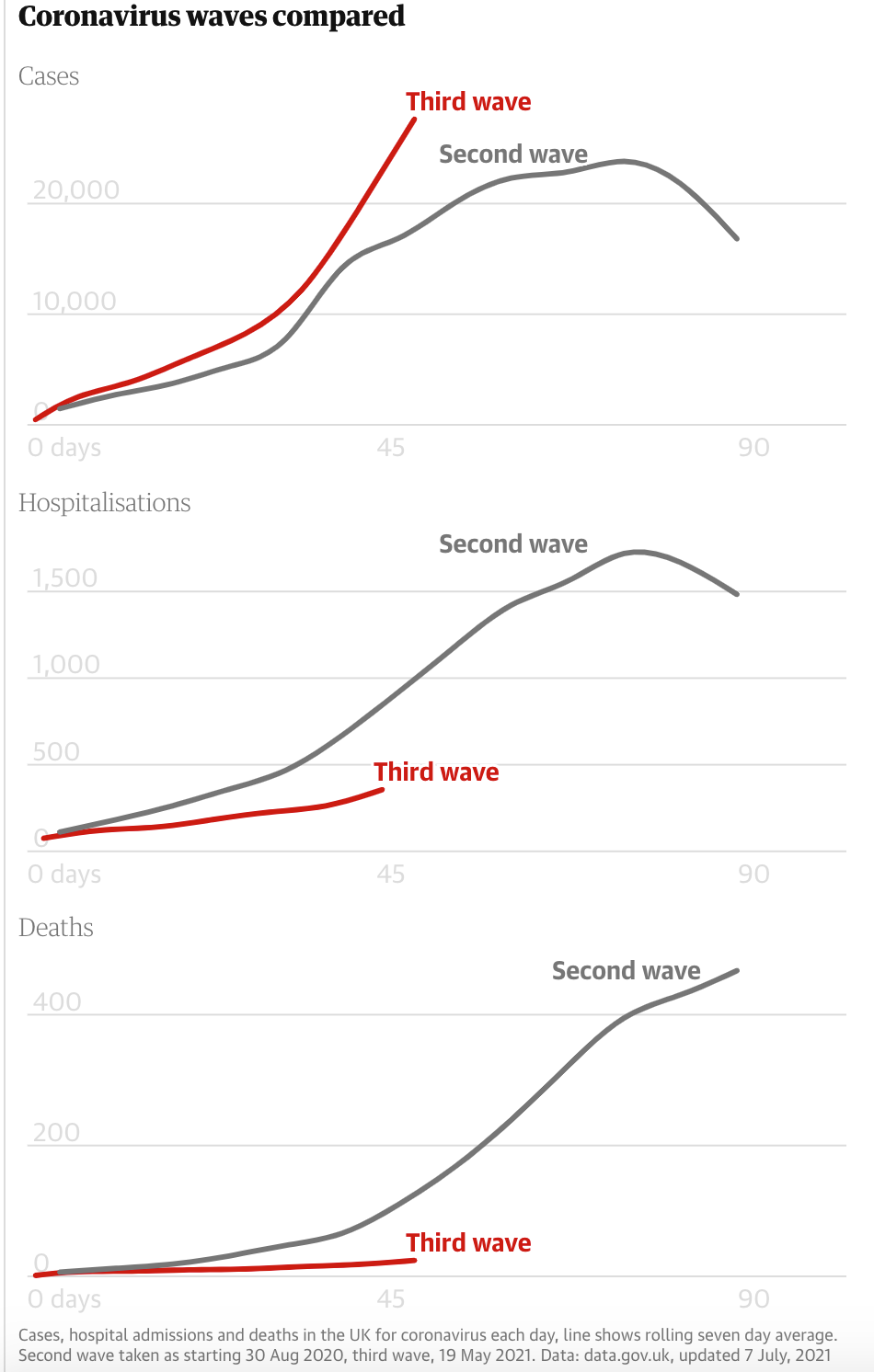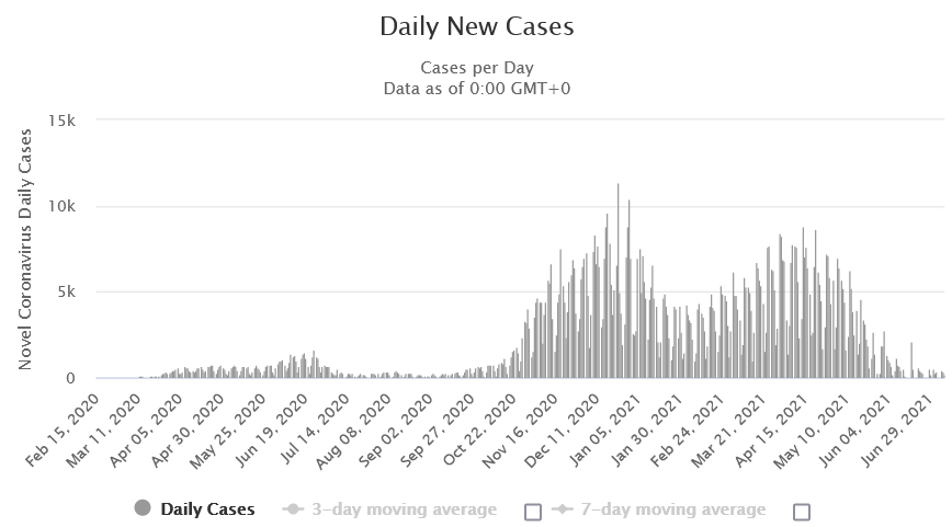 В Великобритании вчера было свыше 32 тысяч случаев. При этом смертей - около 30, в больницах лежит только около 2500 человек. Вакцинация действует, заболевают в основном молодые люди, легче переносят. С 19 июля планируется снять все ограничения, включая ношение масок, если правительство не передумает в последний момент.