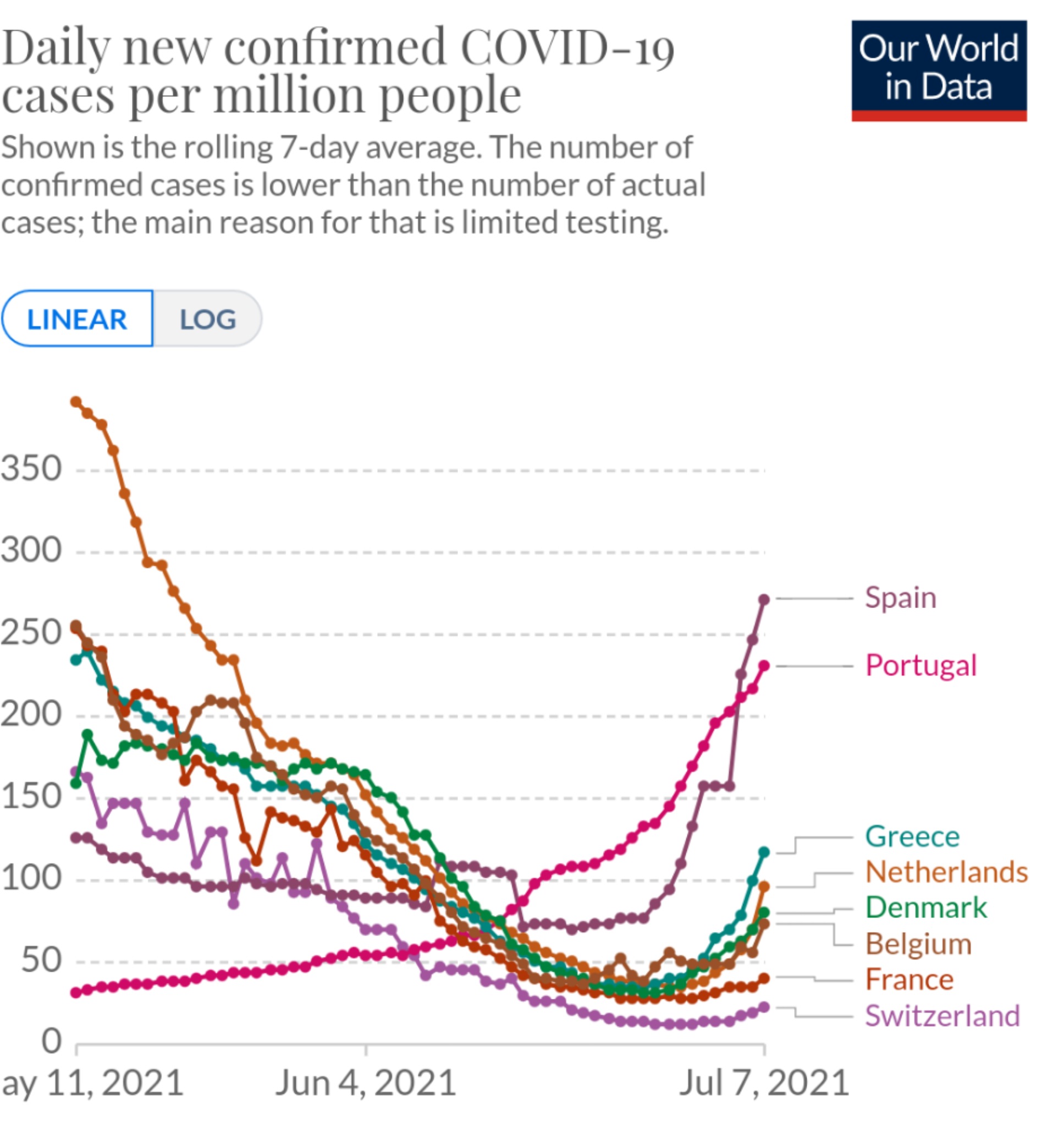 Алекс, что-то мне кажется, что это или ошибка, или опечатка. 252 случая на 100 тыс.человек - это 116 тыс. случаев на всю Испанию (население 46 млн). Статистика говорит о 17 тыс. новых случаев. Так что скорее всего или 252 случая на миллион, или 25,2 на 100 тыс.