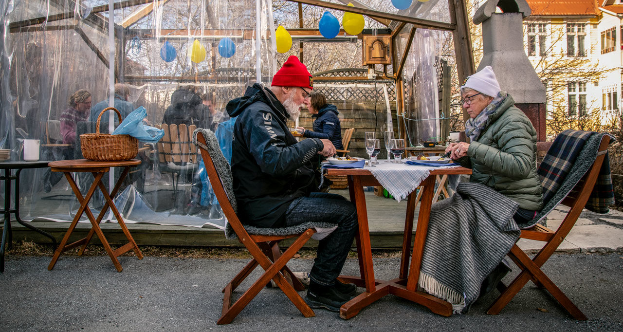 Апрель 2020. Пожилая шведская пара обедает отдельно от своих детей. Нет, им никто не приказывал. Это сознательность (фото из статьи по ссылке).