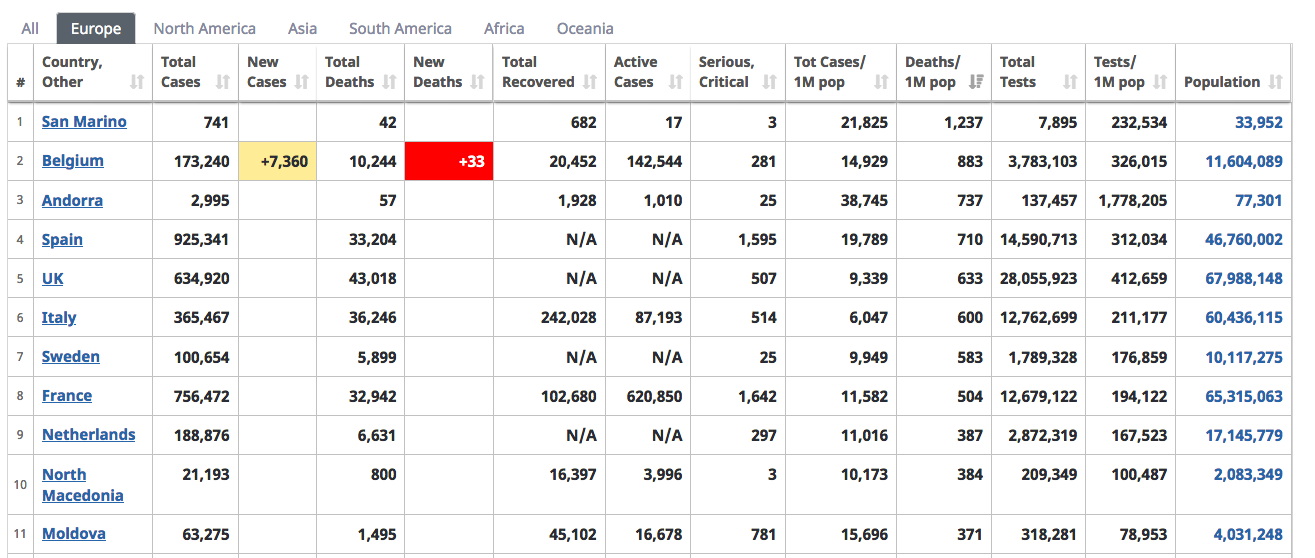 Фишка с Бельгией в том, что бы они ни делали (а делают они много, активно и с выдумкой) - результат самый плохой в Европе на всем протяжении коронобория, начиная с марта.