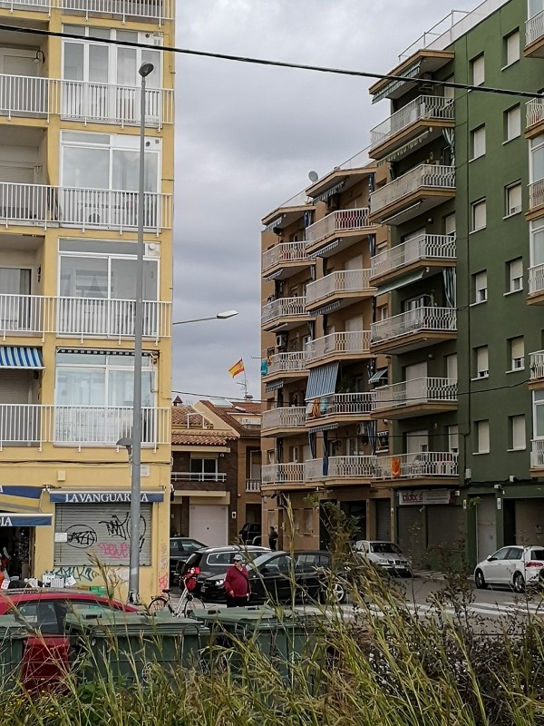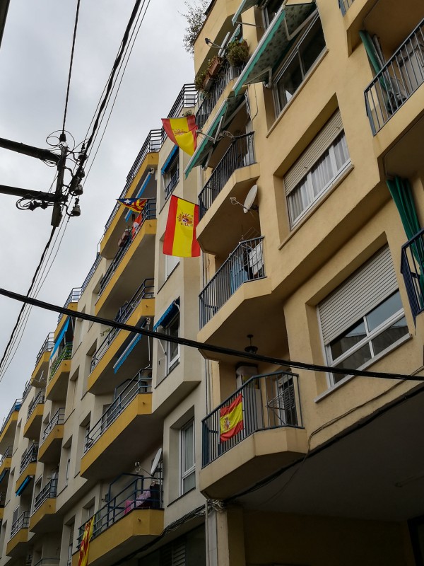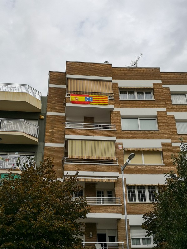 Сразу бросается в глаза то, что в городе стало намного меньше сепаратистских флагов (эстелада - каталонский флаг с синим треугольником и белой звездой) и намного больше испанских флагов и официальных каталонских флагов (сеньера), которые вывешивают противники отделения.