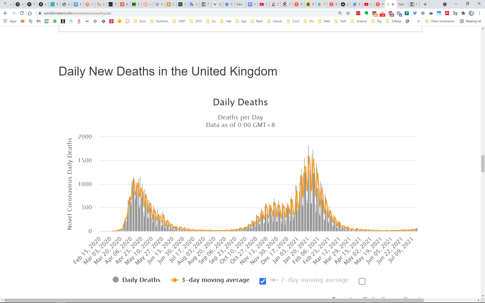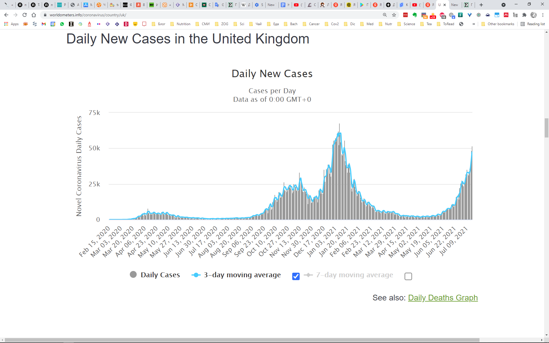 Данные по UK, конечно, поражают. Третья волна случаев с замахом на выше двух первых. Смертей - практически ноль. Таким образом, получают подтверждение сразу две гипотезы: 1) инфицируются ли вакцинированные и распространяют ли они? По-видимому, да. 2) Эффективны ли вакцины "первой волны" против тяжелого течения и ассоциированной с ним смертности? По-видимому, да.