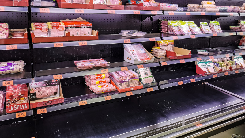 Приехал в "Меркадону". Смотрю, что-то народу маловато, пару дней назад было заметно больше, все сгребали. Но прошелся по магазину - теперь понятно, почему народу мало. Потому что все выгребли.
