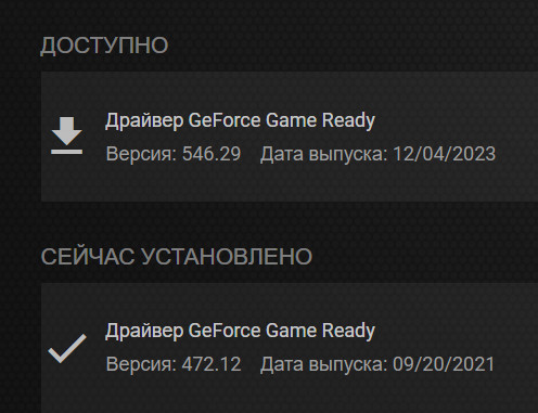 Установил, работает, питания вроде хватает. Скачал дистрибутив драйверов и утилит - установил, полет нормальный. Там установлен драйвер GeForce Game Ready 472.12 от 09.20.2021. Приложение предложило установить совсем новый драйвер 546.29, установил - и с ним начались серьезные глюки: какие-то заметные горизонтальные полосы по всей центральной части экрана, которые наблюдаются во всех окнах, включая системные (на экране перезагрузки, на входном экране, во всех программах). Попробовал установить драйвер 526.47 (это требует NVidia Broadcast) - тоже чертовы полосы. Откатываюсь на старый 472.12 - никаких полос нет.