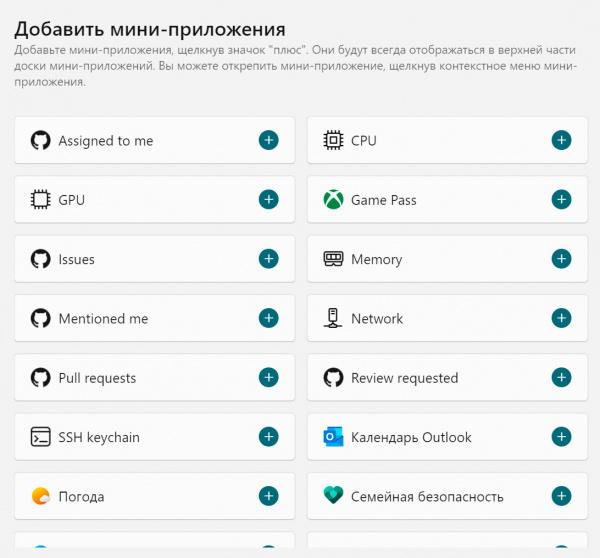 Также они станут доступными для установки в стандартной панели виджетов (Win+W):