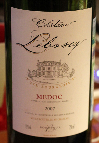 Вино не пятничное, но субботнее. Просто не успел вчера написать. Продолжаю случайным образом исследовать французские вина. На этот раз - "Шато Лебоск Медок Крю Буржуа" 2007 года. Ничего о нем не знал, просто название понравилось. Хотя мне раньше сам термин "Медок" не нравился - очень напоминало всякие ненавидимые "Нинок", "Лидок", "Машок" и так далее, хотя глупо соотносить известный и очень качественный, как сказали спецы, апеллясьон из Бордо с нашими простонародно-уменьшительными именами.