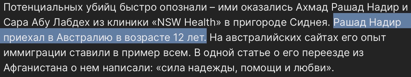 Сын, уже гражданин Австралии, возможно с рождения, плохо зная язык, тусовался только со своими, в стране они устроились плохо, учились плохо (с плохим знанием языка) им нужна идентичность - вот религия, ненависть. Всем вокруг все дается легко, а он лузер, и ненависть растет.