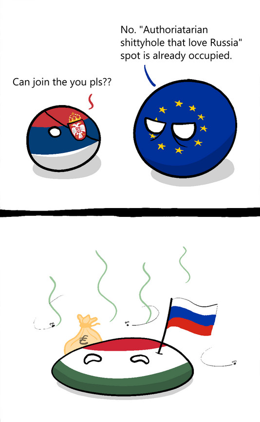 За Вучича на фотожабе обидно. Сербия ни в ЕС, ни в НАТО. Соседи ее принципиально никуда не пустят. Внутри народ несколько реваншизма желает. С другой - с нацистами бороться. Протесты год - не разгоняет. Процедуры соблюдает, выборы проходят и выборы честные, партии не разгоняет.