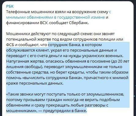Тем временем появилось предупреждение о мошенниках, которые звонят от имени органов и пугают уже не взятым кредитом, а тем, что якобы со счёта был зафиксирован перевод в СБУ. Оперативно.