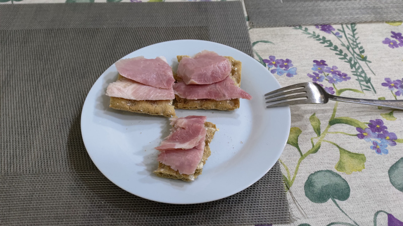 Это что крекер стыдливо из-под ветчины выглядывает? Это не грехопадение, а гастрономическое преступление, там должен быть черный ржаной хлеб, не старее двух часов.