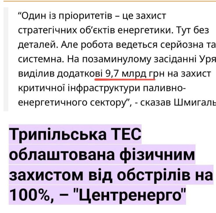 На позаминулому засіданні Уряд виділив додаткові 9,7 млрд грн на захист критичної інфраструктури паливно-енергетичного сектору”, - сказав Шмигаль.