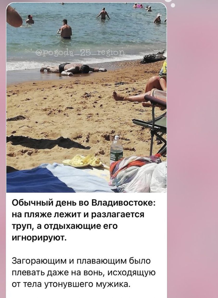 Фотография с пляжа Владивостока мужик утонул лежит труп на берегу разлагаеться, народ продолжает купаться.