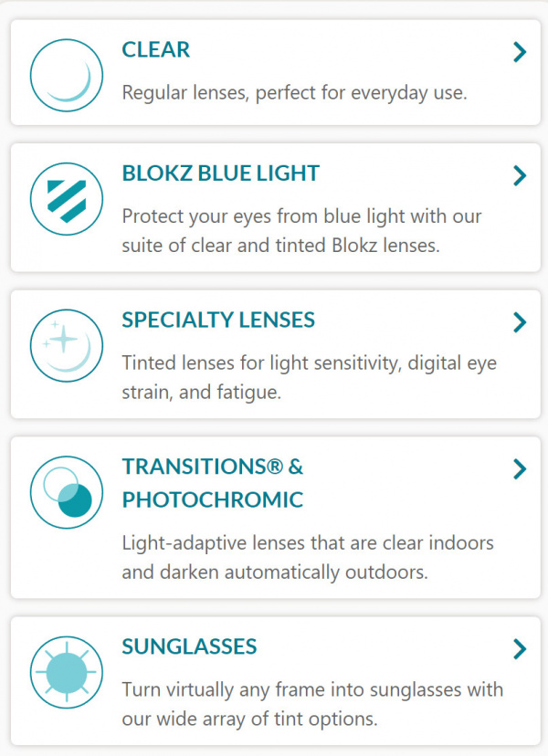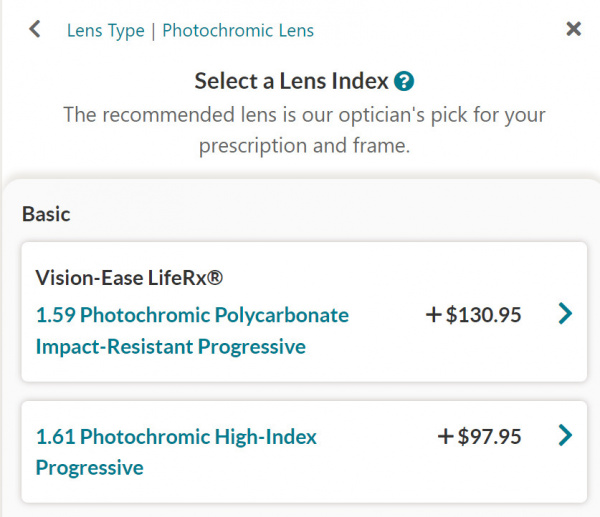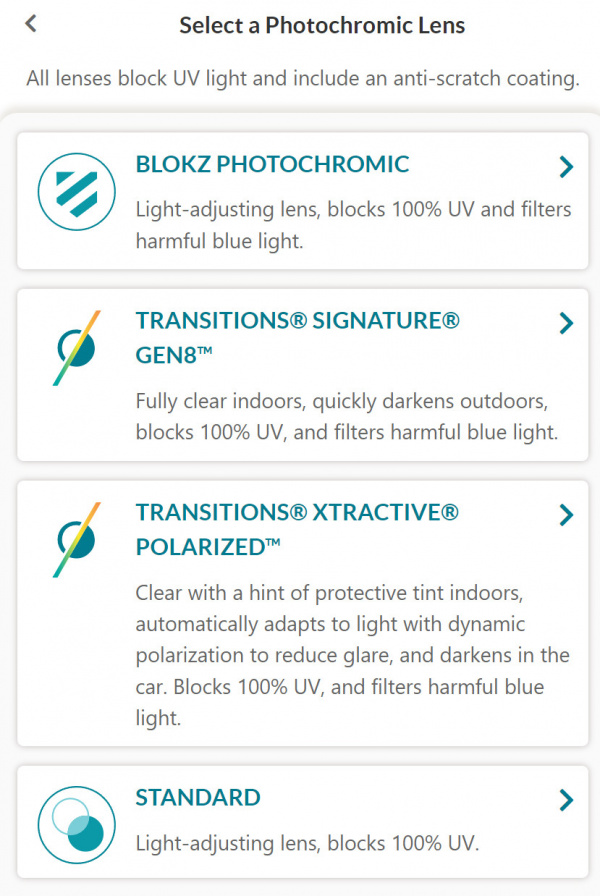 Из вот этого списка мне нужно выбирать Transitions & Photochromic, так?
