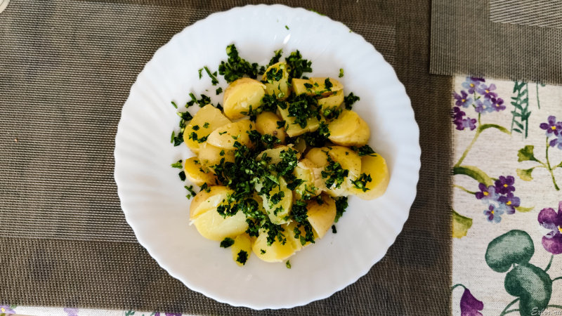 Такое ощущение, что Экслер конкретно физически вкалывает и при этом недоедает. Что-бы просто картошка с маслом, чесноком и зеленью показалась ПИПЕЦ КАКОЙ ВКУСНОЙ, это надо весь день на стройке/огороде без обеда пахать и потом ещё 1,5 часа домой добираться.