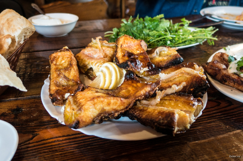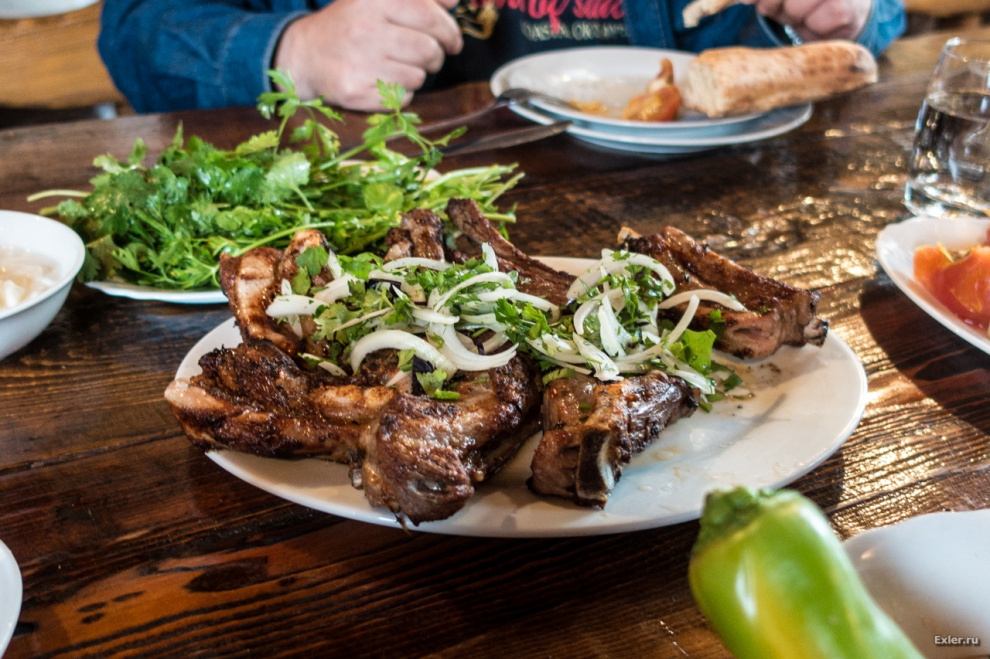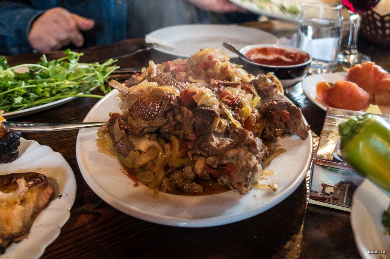 Меню только на армянском, поэтому просто сказали, что могут приготовить. Были свиные ребрышки (типа шашлык), шашлык из стерляди, утка, пришедшая с гор (высокогорная), хашлама и так далее.