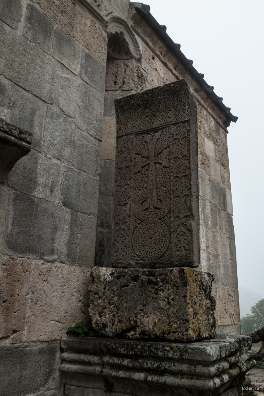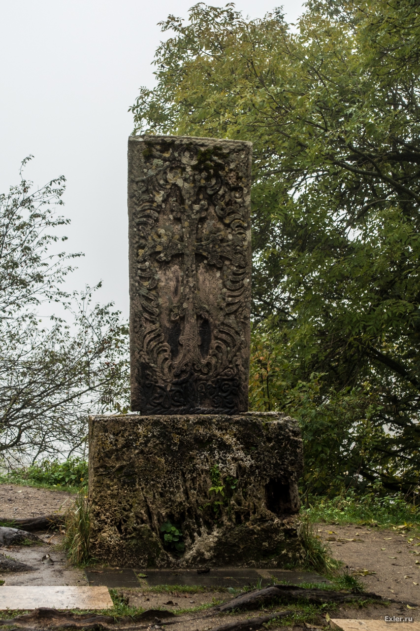 Вышли из церкви, посмотрели на хачкар - камень с крестом. Раньше они были языческие, но с принятием христианства - стали христианские.