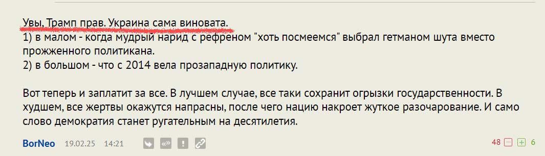 И это несмотря на то, что полная цитата есть в его же ссылке, и в ней видно, что это слова украинки, которая работает с возвращенными украинскими пленными, а не Кара Мурзы.
