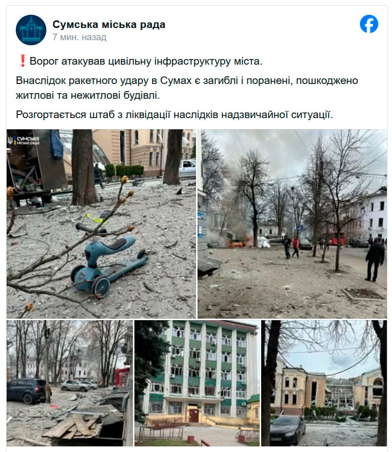 Россия обстреляла центр Сум на Вербное воскресенье.