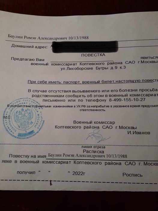 Несмотря на это, 11 октября компания получила повестки. От всех потребовали явиться в мобилизационный пункт Объединенного военного комиссариата Лефортово. При этом сотрудники «РДЛ-Телеком» были приписаны к другим военкоматам.