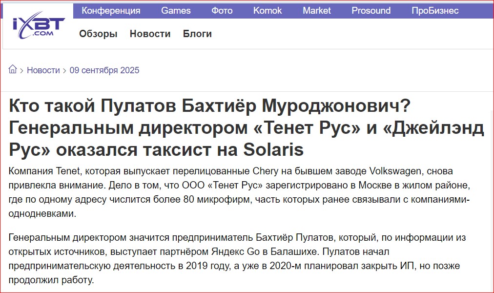 https://www.ixbt.com/news/2025/09/09/kto-takoj-pulatov-bahtijor-murodzhonovich-generalnym-direktorom-tenet-rus-i-dzhejljend-rus-okazalsja-taksist-na-solaris.html