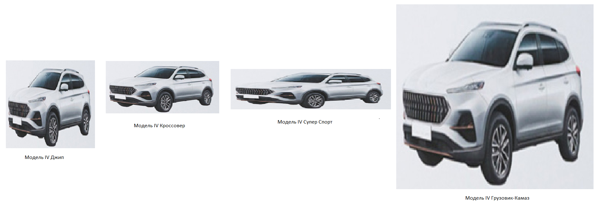 Посмотрите, например, на модель IV. Ничего не напоминает? Не просто напоминает, а это и есть - китайский JAC S7, который в России собирается и продается.