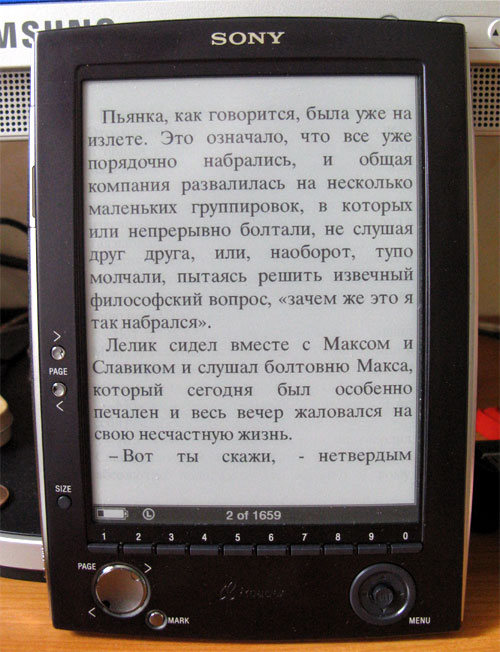 Размер шрифта на специальном sony-формате можно менять - там три варианта размера. Вот самый крупный: