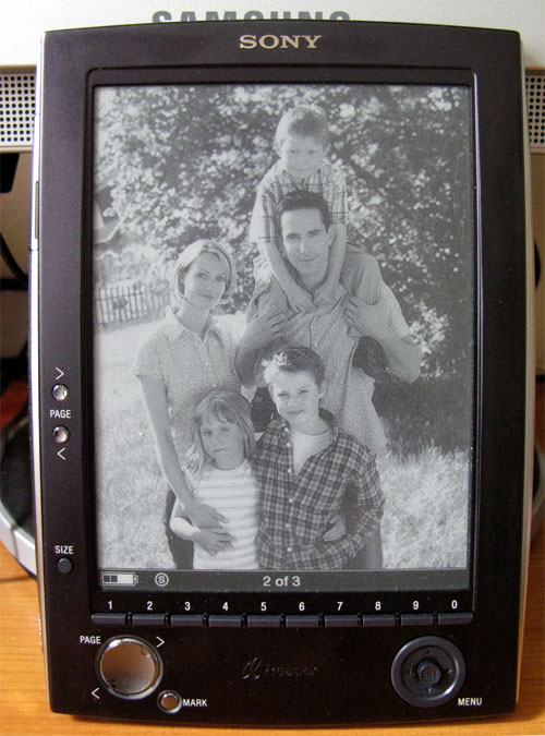 Однако странно, что эта штука не подзаряжается через USB - вот это уже явно неудобно. Да и заявленный срок жизни батареи на 7000 страниц выглядит пока более чем сомнительно: я на ней прочитал книжки четыре, а на батарее осталось всего одно деление из четырех. Впрочем, еще нужно потестировать.
