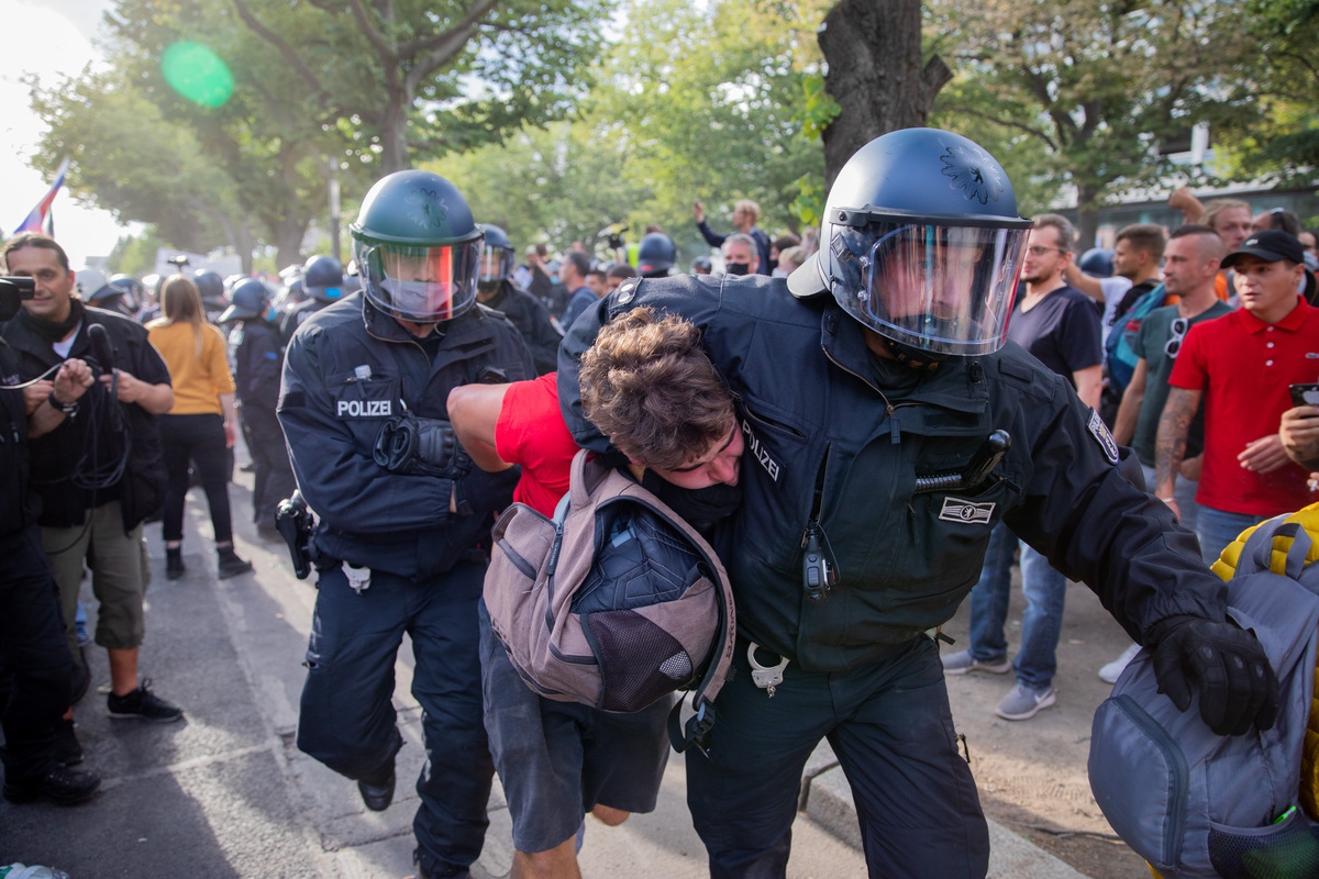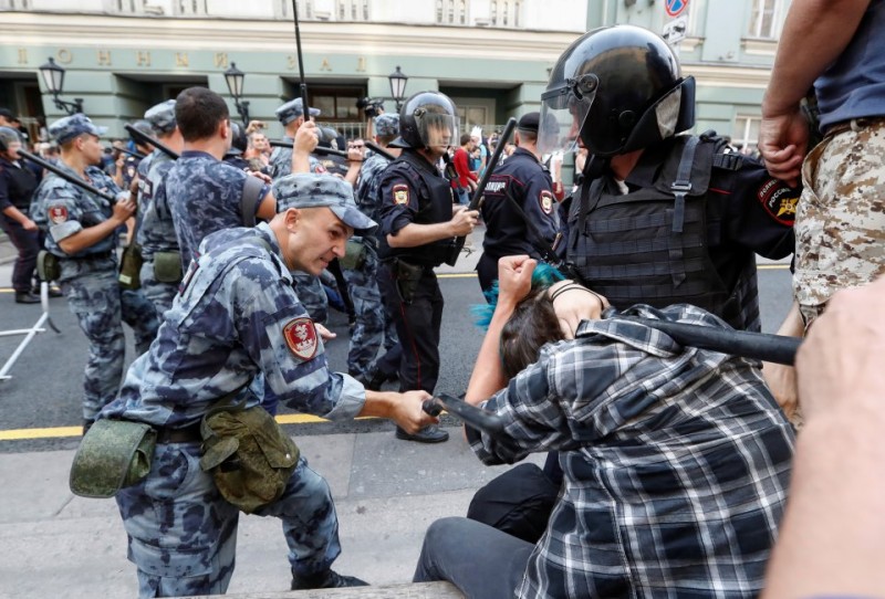 Ни одной дубинки в кадре. Никто никого не бьёт.