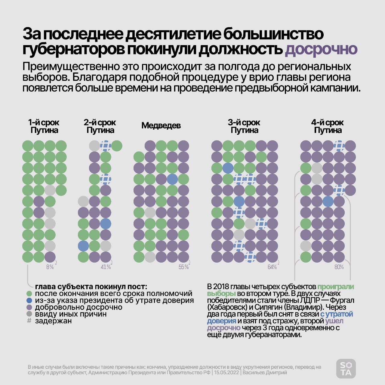 В новой инфографике мы показываем, как институт губернаторских выборов с годами уничтожался при его формальном сохранении.