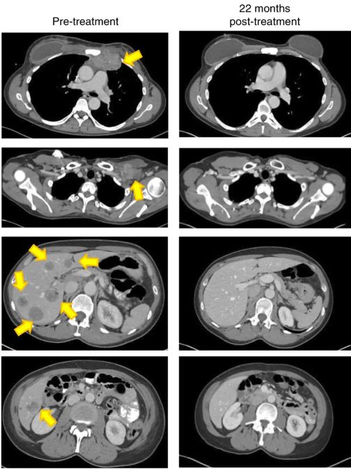 О своем опыте экспериментального лечения она рассказала журналистам: «Примерно через неделю после начала терапии я начала что-то чувствовать. В моей груди была опухоль, и я чувствовала, как она сжимается. Еще в одну-две недели она совсем исчезла».