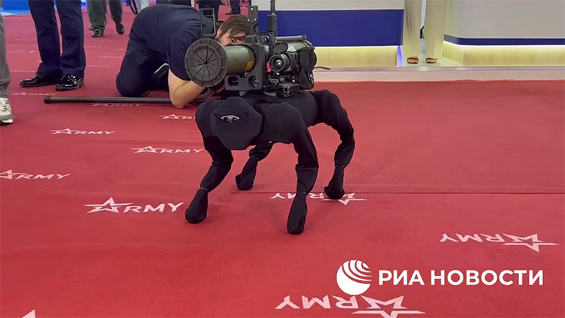 «На роботе-собаке устанавливают тактический лазерный автоматизированный комплекс, управление и контроль которыми осуществляют дистанционно оператором боевого расчета, находящимся в укрытии», — сказано в реферате изобретения.