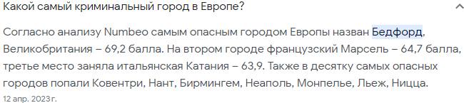 криминал криминалу рознь. В Бедфорде, наверное, бухают каждый вечер и потом дерутся барными стульями, всем городом, бар на бар. В Марселе, понятно, куча юных апашей африканского происхождения, кража сумочек с мотороллеров, квартирные кражи, то-сё. Катания, это, извините, Сицилия. КозаНостра, вот это вот всё.
