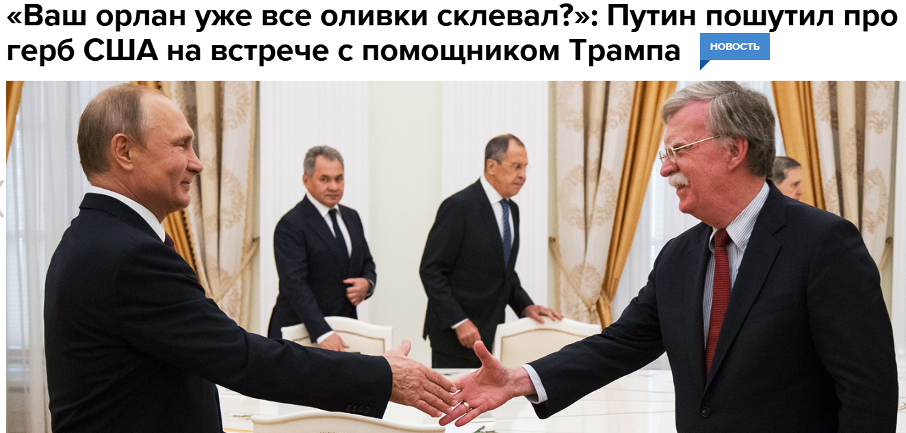 Почему Болтон должен говорить по другому, если Путин реально приходит на переговоры лучше подготовленным?