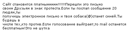 Теперь по "Одноклассникам" гуляют "святые письма", которым уже лет десять (начиналось это все еще с аськи): предупреждение о том, что "Одноклассники", дескать, станут платными. Поэтому каждый тупоголовый идиотский дебильный кретин должен разослать это письмо 20 "одноклассникам", после чего у него что-то там посинеет и наступит ЩАСТЕ.