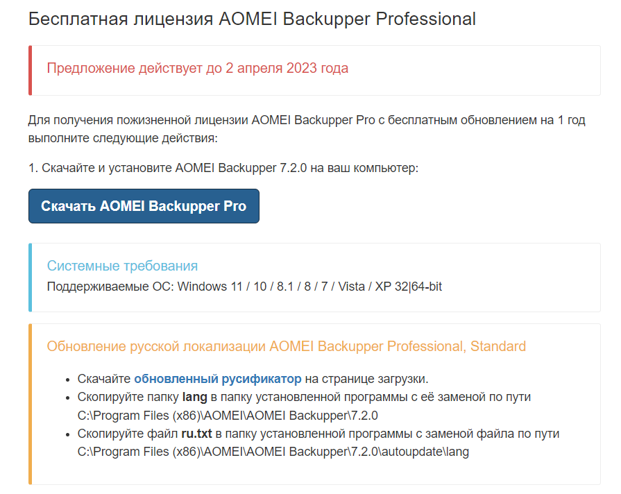 Как раз до 2 апреля AOMEI Backupper Pro пожизненные лицензии раздают
