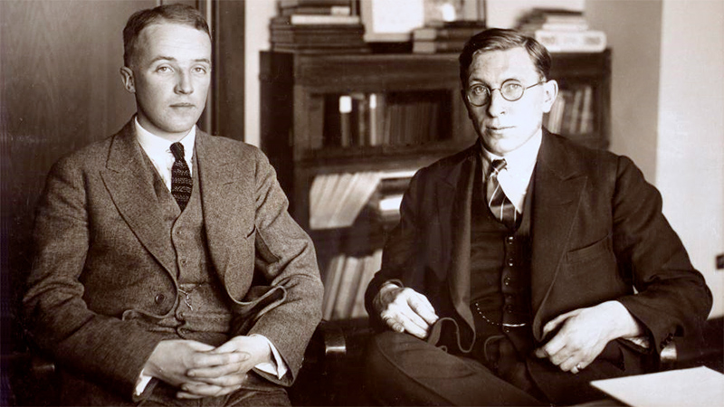 Фредерик Бантинг (справа) со своим ассистентом Чарлзом Гербертом Бестом. В 1921 году они впервые получили и практически применили инсулин.