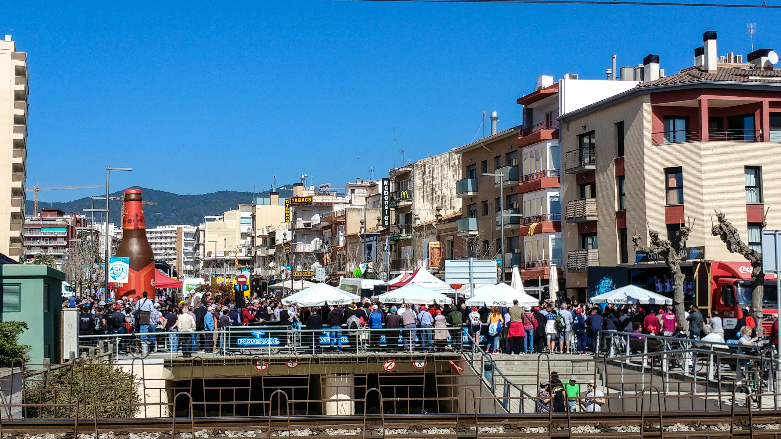 В нашем городке вчера прошел первый этап 97-й велогонки "Вуэльта Каталония". Я во время старта как раз был на прогулке, так что немножко что-то заснял.