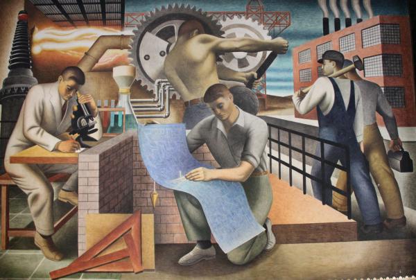 Но нам объяснили, что раньше в этом здании было Министерство социального страхования, и панно осталось от них. Оно символизирует социальное неравенство: посмотрите, с какой ненавистью рабочий с кувалдой смотрит на интеллигентика с микроскопом. "Эх, стебануть бы его кувалдой по башке", - как бы говорит взгляд рабочего.
