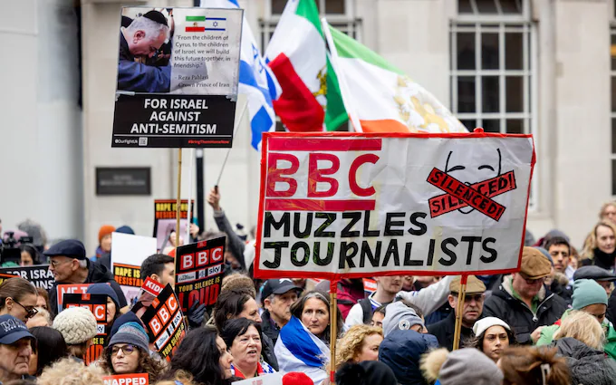 Произраильская акция протеста у штаб-квартиры Би-би-си в феврале. (Hesther Ng/SOPA Images/Shutterstock)