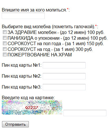 А в чём претензия-то, не понимаю. Что проверить нельзя? Так во-первых, в церкви всё на вере основано, а во-вторых, никто не мешает прийти во время молебна и слушать называемые имена. Слово неправильно написали? Вряд ли это "попы" занимались веб-программированием. Не говоря уже о том, что у самого Экслера постоянно опечатки проскакивают . Грехи, кто не в курсе, отпускают совершенно бесплатно, на исповеди. А заказать молебен за Сатану, rojer , так же остроумно, как, например, в гостях нас%ть посреди комнаты.