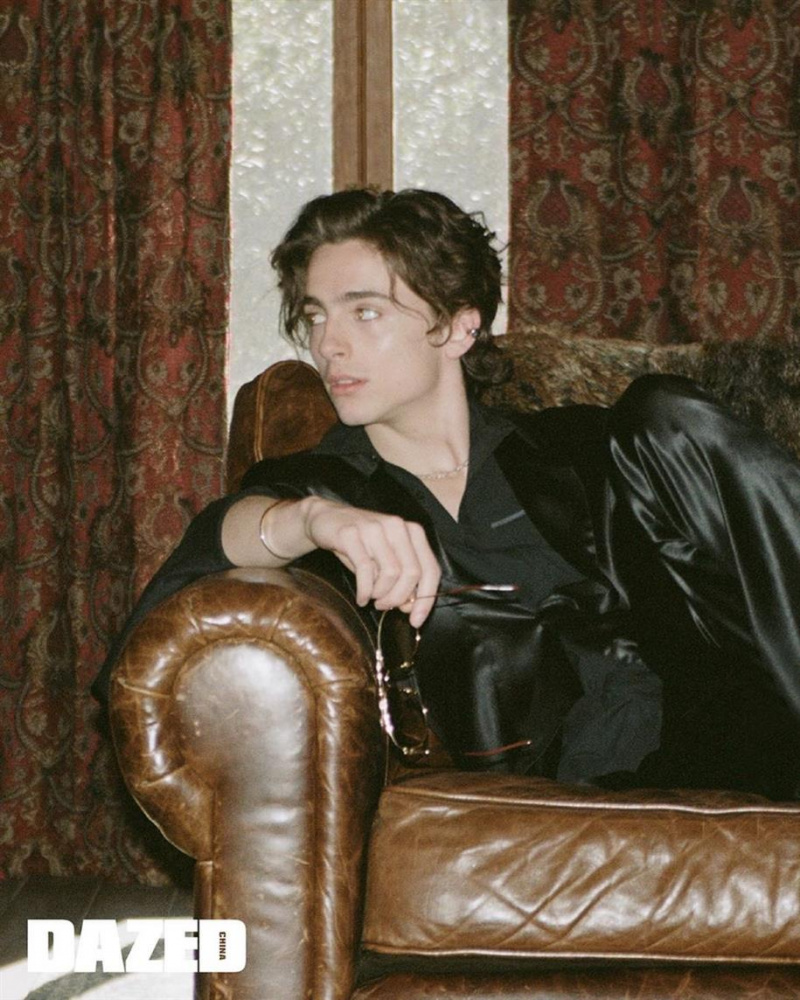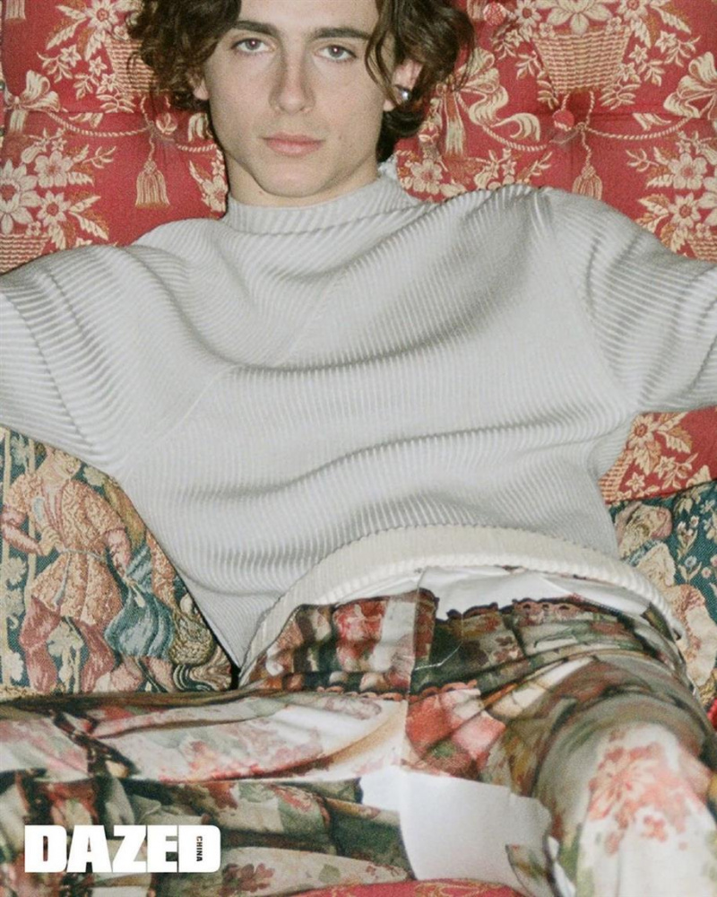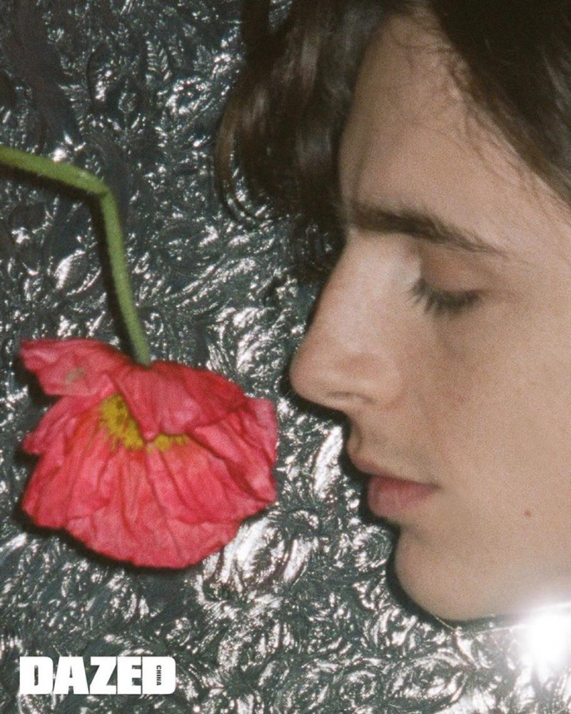 Вот, например, снимки Тимоти Шаламе в журнале Dazed. Голова актера лежит на жутко бликующем целлофане, перед ним лежит несфокусированное нечто - то ли завядший цветок, то ли просто какая-то тряпка, лицо Тимоти тоже не в фокусе.