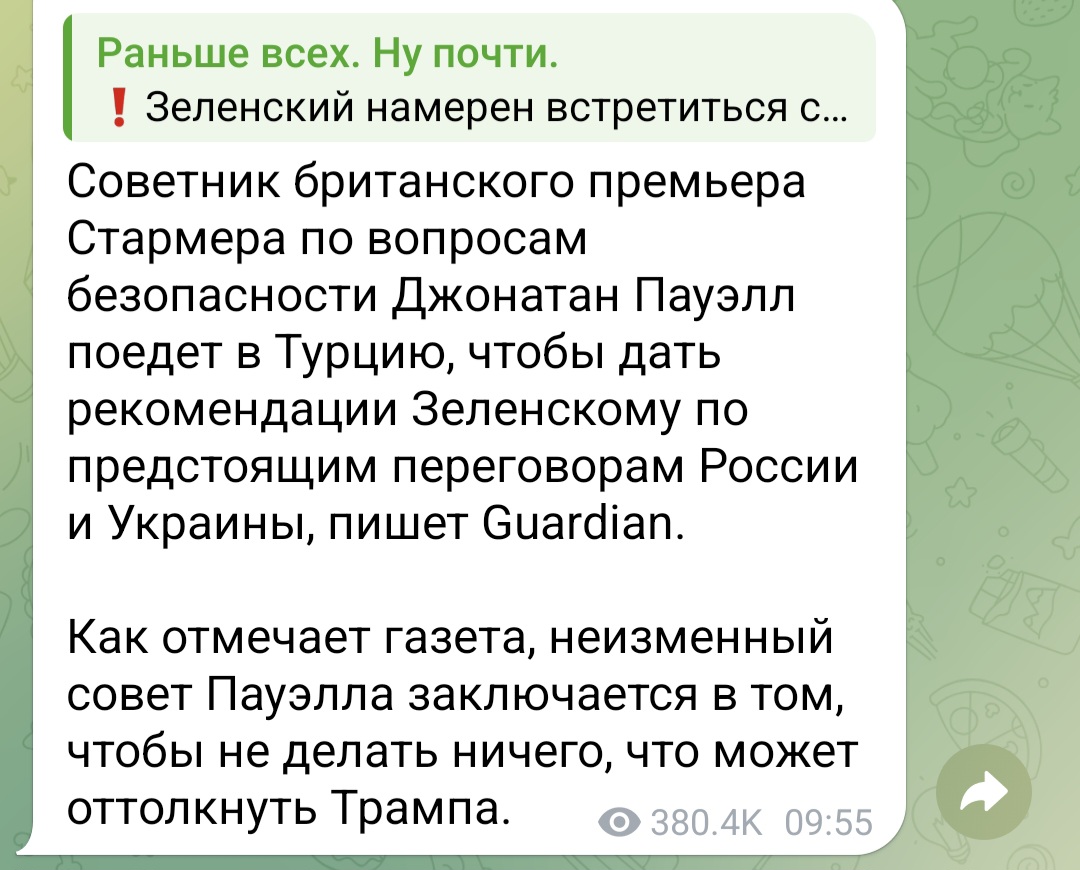 То есть даже Ермак не едет в Стамбул, уровень делегации - всего лишь минобороны.И кто-то ещё чего-то ждёт от этого мудинского междусобойчика? Смешно. Идея переговоров полностью выхолощена, а РФ просто троллит Киев.