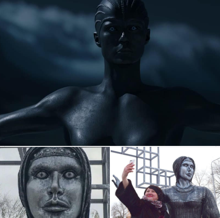 Это памятник инопланетянке: "Люди Земли - мы пришли с миром!"