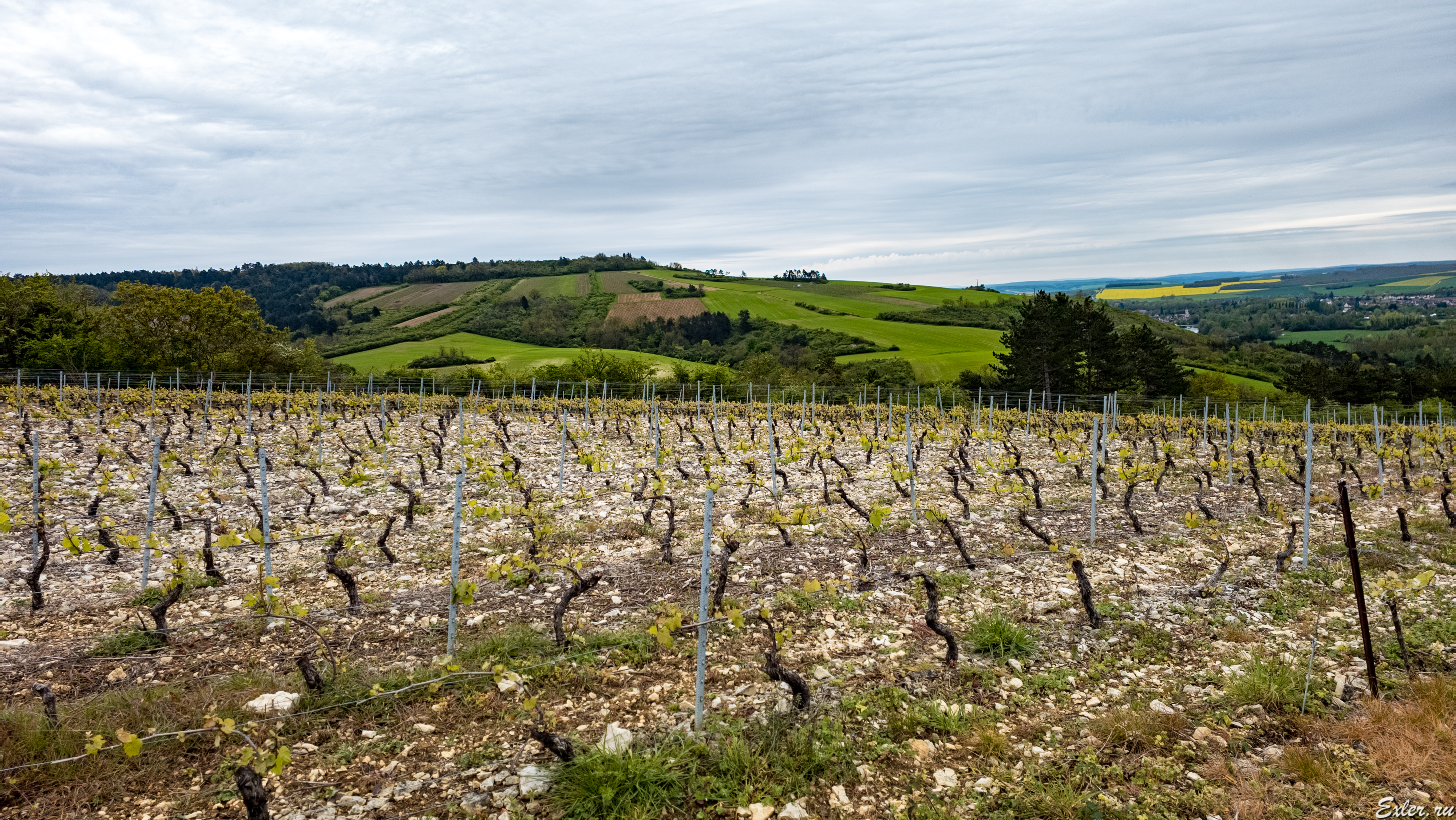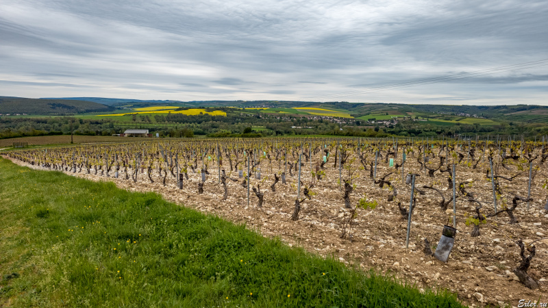 И чисто для иллюстрации - весенние виноградники Бургундии. (Осенью фотографии будут на порядок более эффектные.)