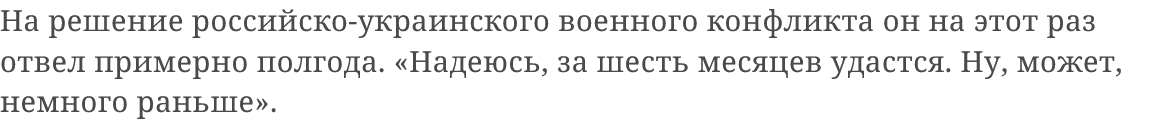 3) Вера в политиков, что они говорить будут одно, а делать совершенно противоположное, но при этом обязательно хорошее, как-то уж очень, гм, иррационально оптимистична, говорит мне весь мой скромный опыт жизни на этой планете.