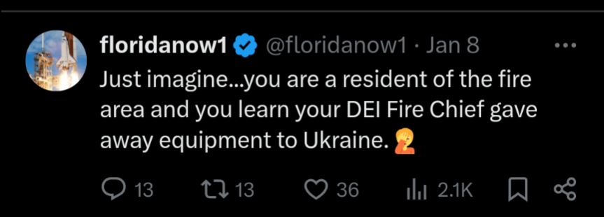 Пока что я вижу, что человек, который несколько лет здесь, и последовательно утверждал, что он пожарный, говорит, что у него нет причин сомневаться в компетенции начальницы пожарной охраны. С другой стороны я вижу двух горлопанов, которые пытаются рассказать о ужасах DEI и о сексуальной ориентации человека, не рассказывали, что именно она на своем посту сделала неправильно и как это связано с ее сексуальной ориентацией.