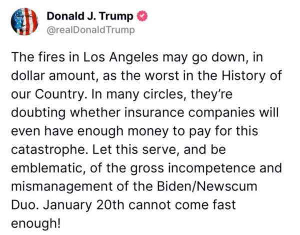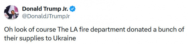 Вот что он выдал в Х-сети по поводу прошедших в Лос-Анджелесе жутких пожаров.