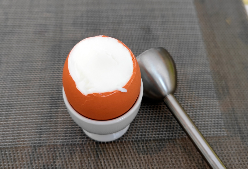Всякий раз когда ем вареные яйца (в холодную воду, до кипения, затем пять минут), то радуюсь, что в свое время купил айершаллензолльбрухштелленферурзахер (вон он лежит справа от яйца). Яйцо в подставочку поставил (тоже полезная штука), айершаллензолльбрухштелленферурзахером его офигачил, ножичком крышечку срезал, из крышечки белок слопал, после чего можно посолить и приступать к поеданию этого вкусного и полезного продукта.